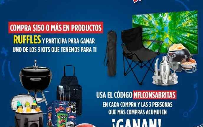 Compra $150 o más en productos Ruffles y gana 1 de 3 kits con pantalla, asador y muchos premios más