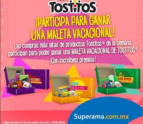 Superama te invita a participar a su concurso Vacación Tostitos en el que podrás ganar kits vacacionales, si quieres ser ganador realiza la mecánica siguiente: