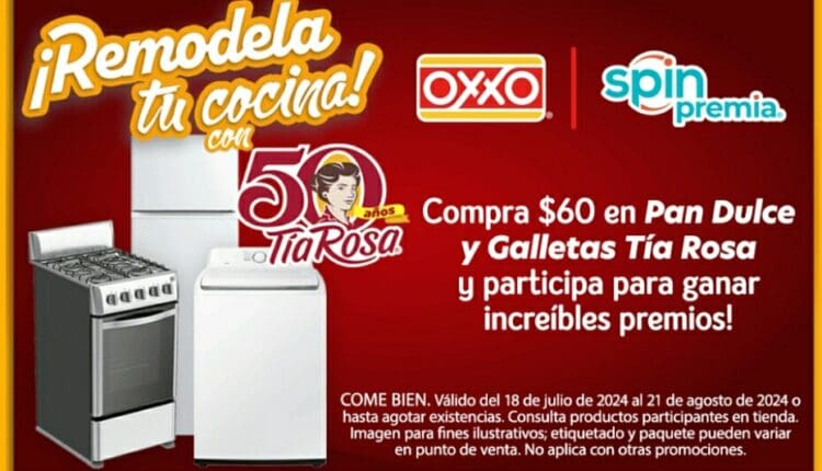 Promoción Tía Rosa 50 Aniversario con Oxxo y Spin Premia Remodela tu Cocina: Gana lavadoras, refrigeradores y más