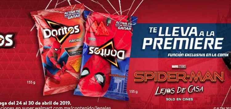 Walmart y Doritos te invitan a participar a su concurso en el que podrás ganar 1 de 20 pases dobles para la premiere de Spider-Man Lejos de Casa en la CDMX , si quieres ser ganador realiza la mecánica siguiente: