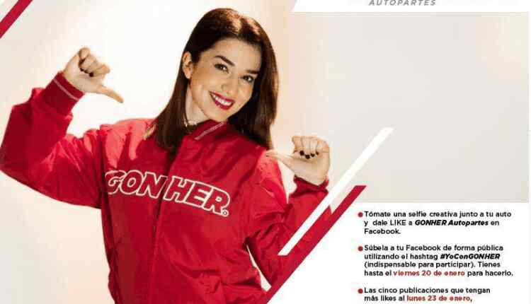 Ingresa a la página de Facebook de Gonher Autopartes y dale like, tómate una selfie creativa junto a tu auto y súbela a tu perfil de Facebook utilizando el hashtag #YoConGONHER.