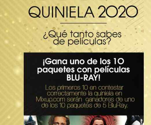 Mixup te invita a participar a su concurso Quiniela Premios Oscar 2020 en el que podrás ganar paquete de películas blu-ray, si quieres ser ganador realiza la mecánica siguiente: