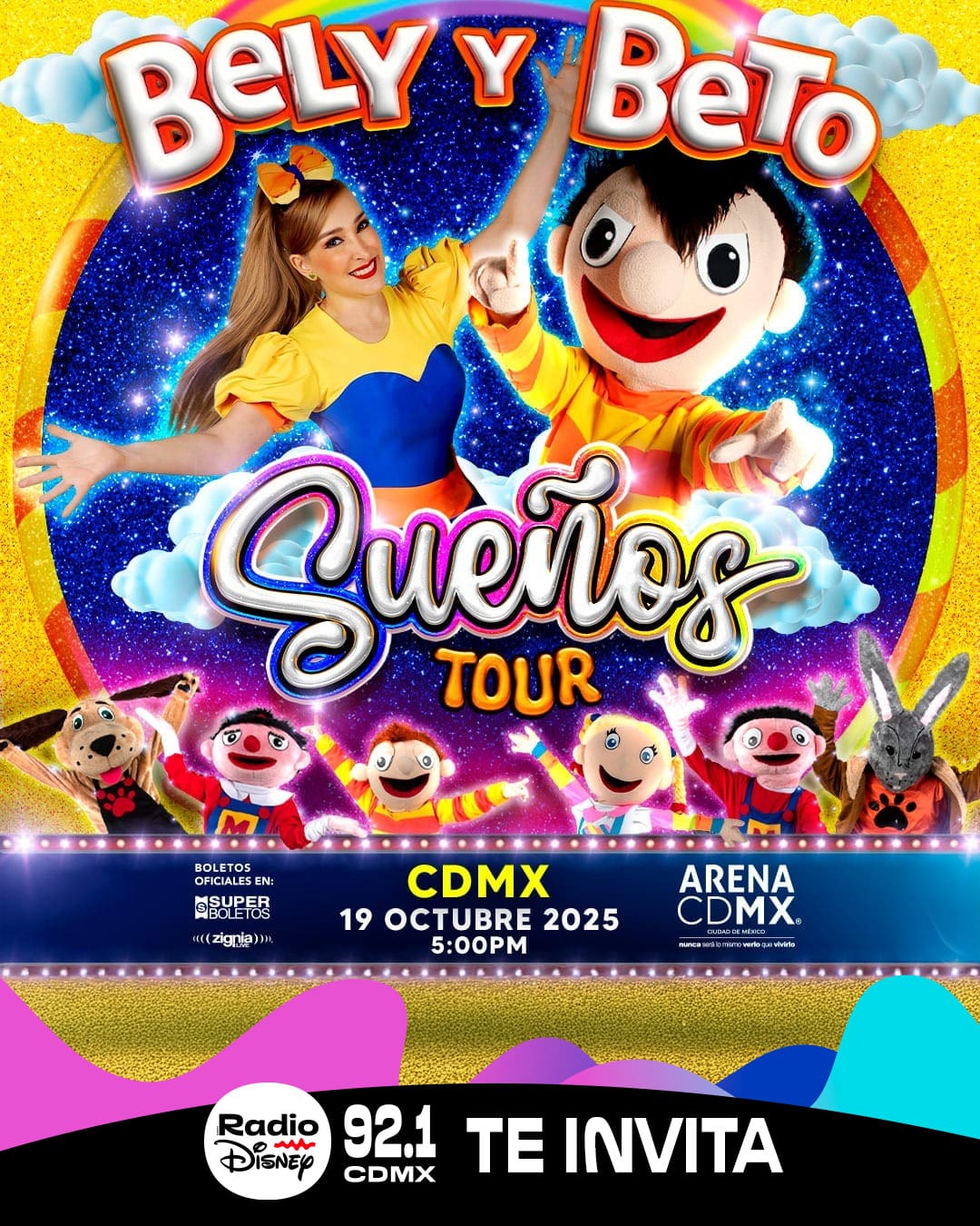 Radio Disney México regalará a los participantes ganadores: Un pase doble para asistir al show de Bely y Beto este 19 de octubre de 2025 en la Arena CDMX.