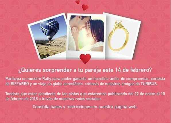 Parque Lindavista te invita a participar a su concurso Rally de San Valentín en el que podrás ganar anillo de compromiso y viaje en globo aerostático, si quieres ser ganador realiza la mecánica siguiente: