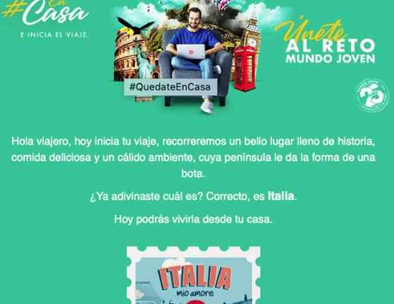 Una vez que completes los 12 días e hiciste las actividades, sube a Facebook o Instagram la foto de tu pasaporte con las 12 estampillas, usa el hashtag #QuedateEnCasa y etiqueta a Mundo Joven, hecho esto deberás subir el link de tu foto dentro del portal antes mencionado.