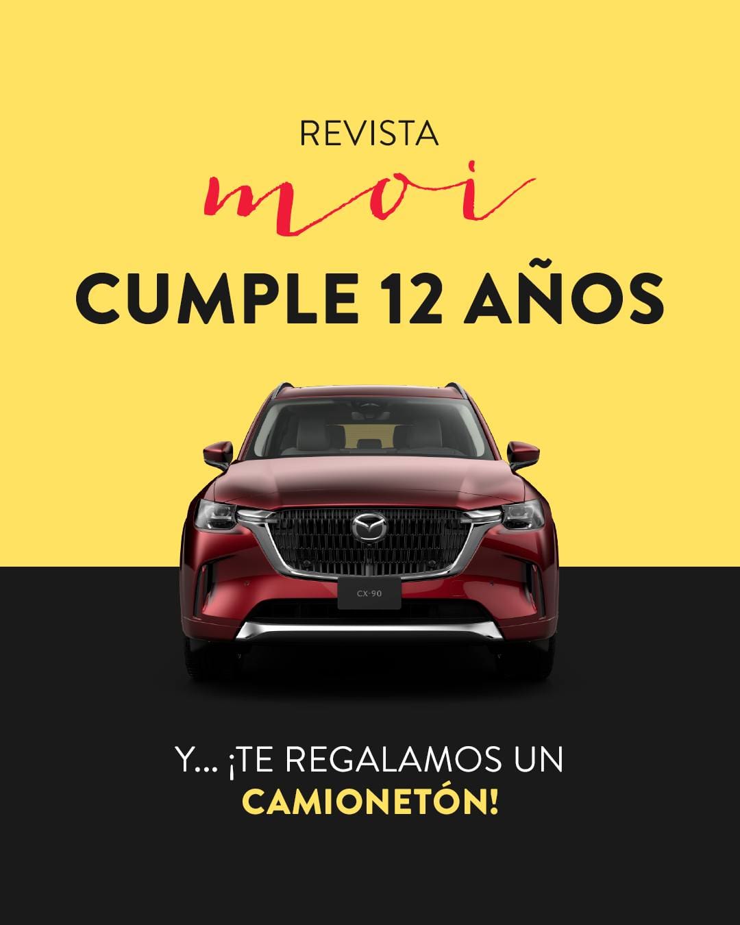 Revista Moi te invita a participar a su concurso 12 Aniversario en el que podrás ganar una camioneta Mazda CX-90, si quieres ser ganador realiza la mecanica siguiente: