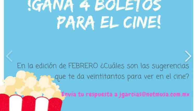 Ingresa a la página de Facebook de Veintitantos Revista y dale ike, responde a: En la edición de Febrero ¿Cuáles son las sugerencias qe te da Veintitantos Revista para ver e el cine?