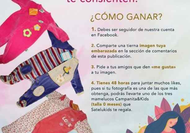 Satelukids y Plaza Satélite Centro Comercial regalarán a las participantes ganadoras: un mameluco Campanita & Kids talla 0 meses