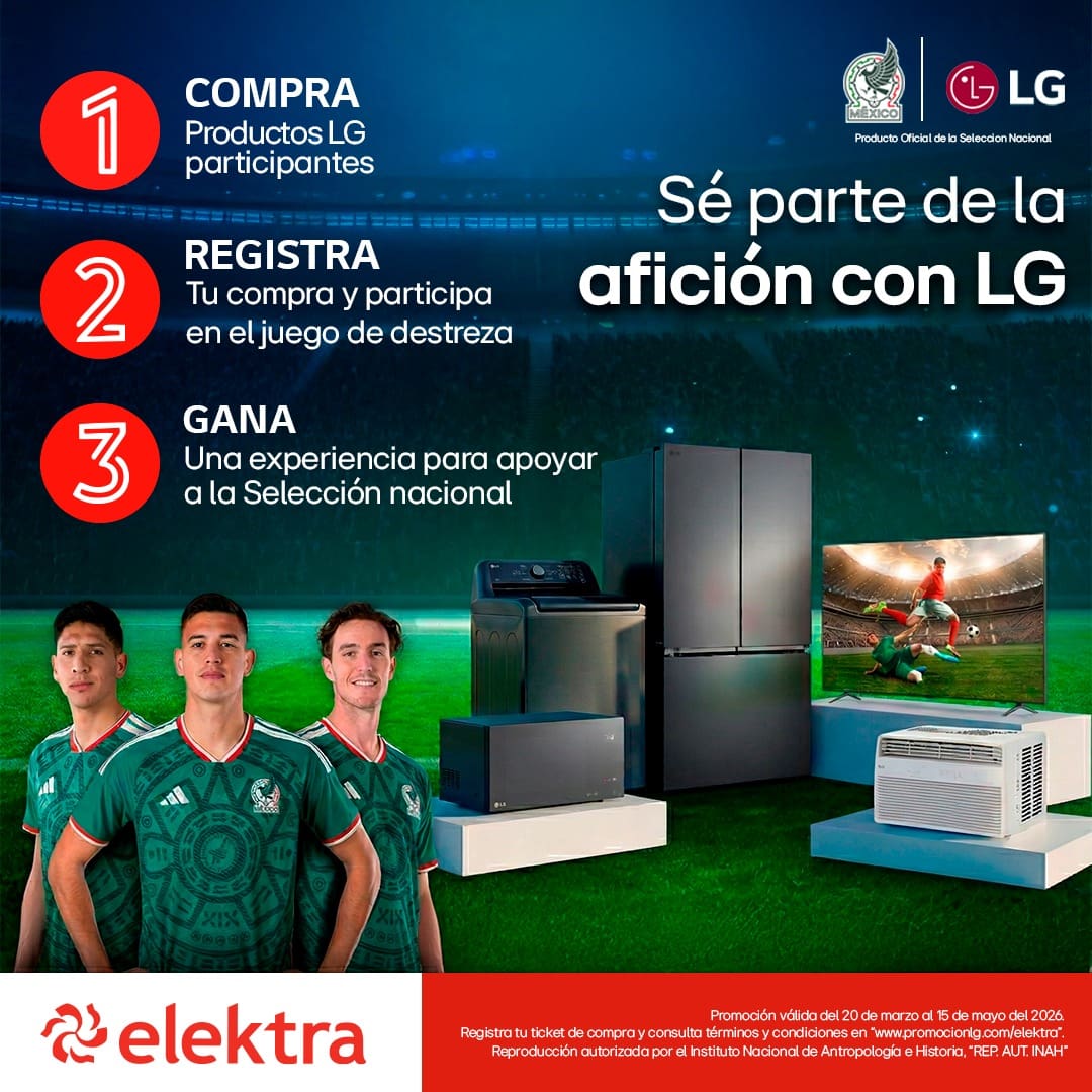 LG y Elektra te invitan a participar a su concurso Sé parte de la Afición en el que podrás ganar una experiencia para apoyar a la Selección Nacional, si quieres ser ganador realiza la mecánica siguiente: