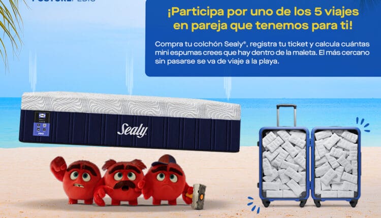 Compra tu colchon Sealy, registra tu ticket, calcula cuántas mini espumas hay dentro de la maleta y gana 1 de 5 viajes en pareja