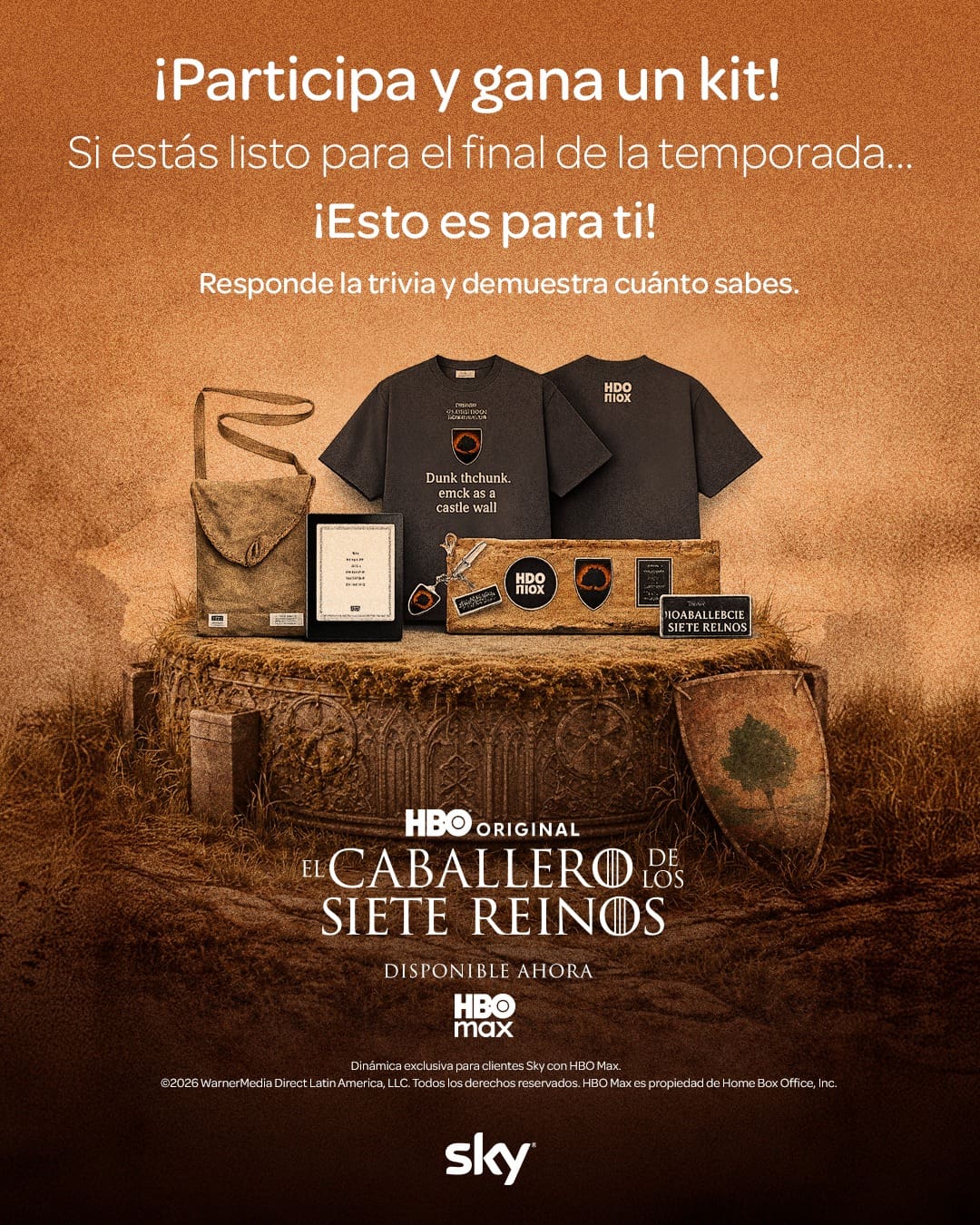 Sky México te invita a participar a su concurso El Caballero de los 7 Reinos en el que podrás ganar 1 de los 7 kits, si quieres ser ganador realiza la mecánica siguiente: