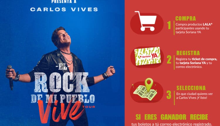 Compra productos Lala participantes, registra tu ticket y gana boletos para los conciertos de Carlos Vives en México