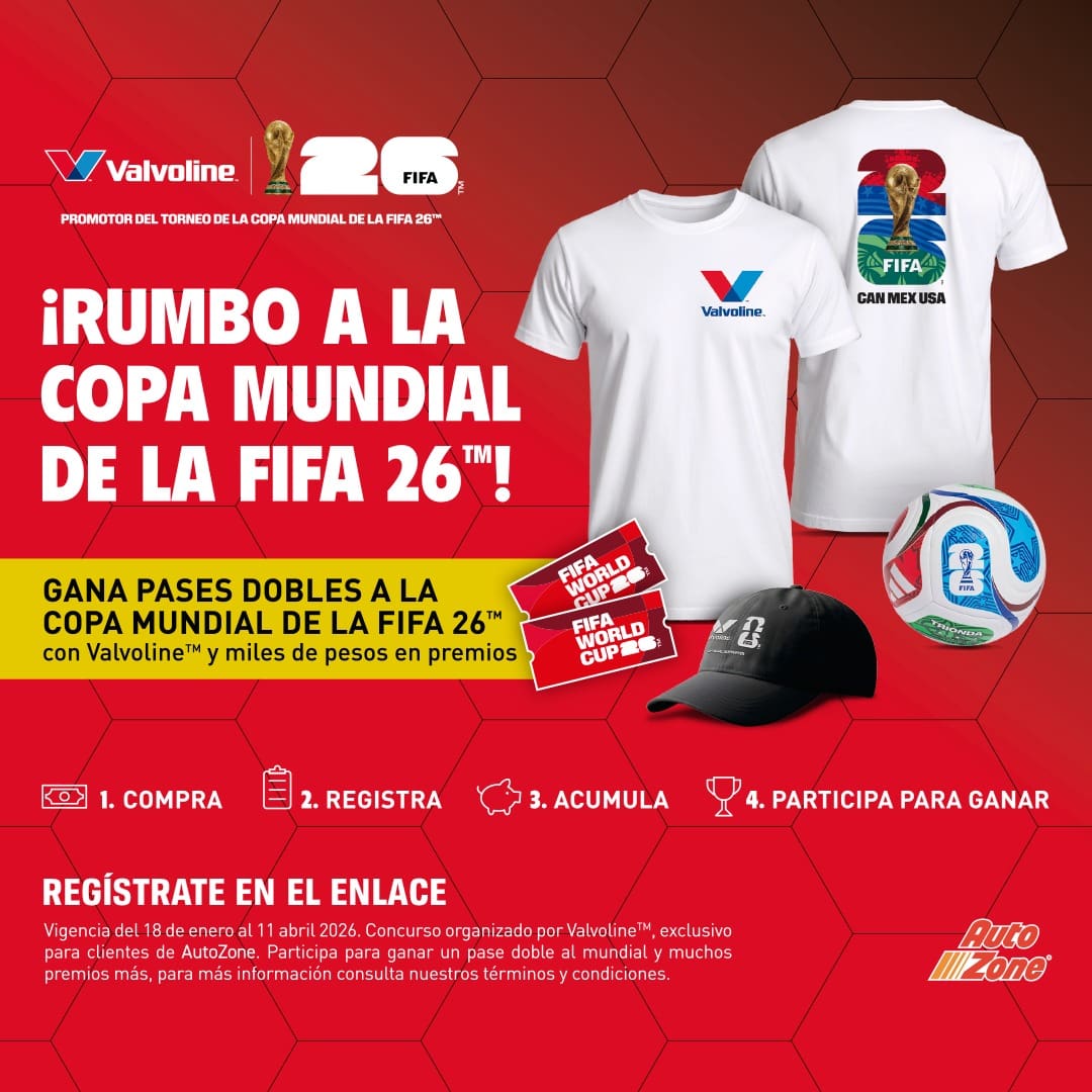 Compra Valvoline en AutoZone, registra tus tickets y gana pases dobles para el Mundial de la FIFA 26