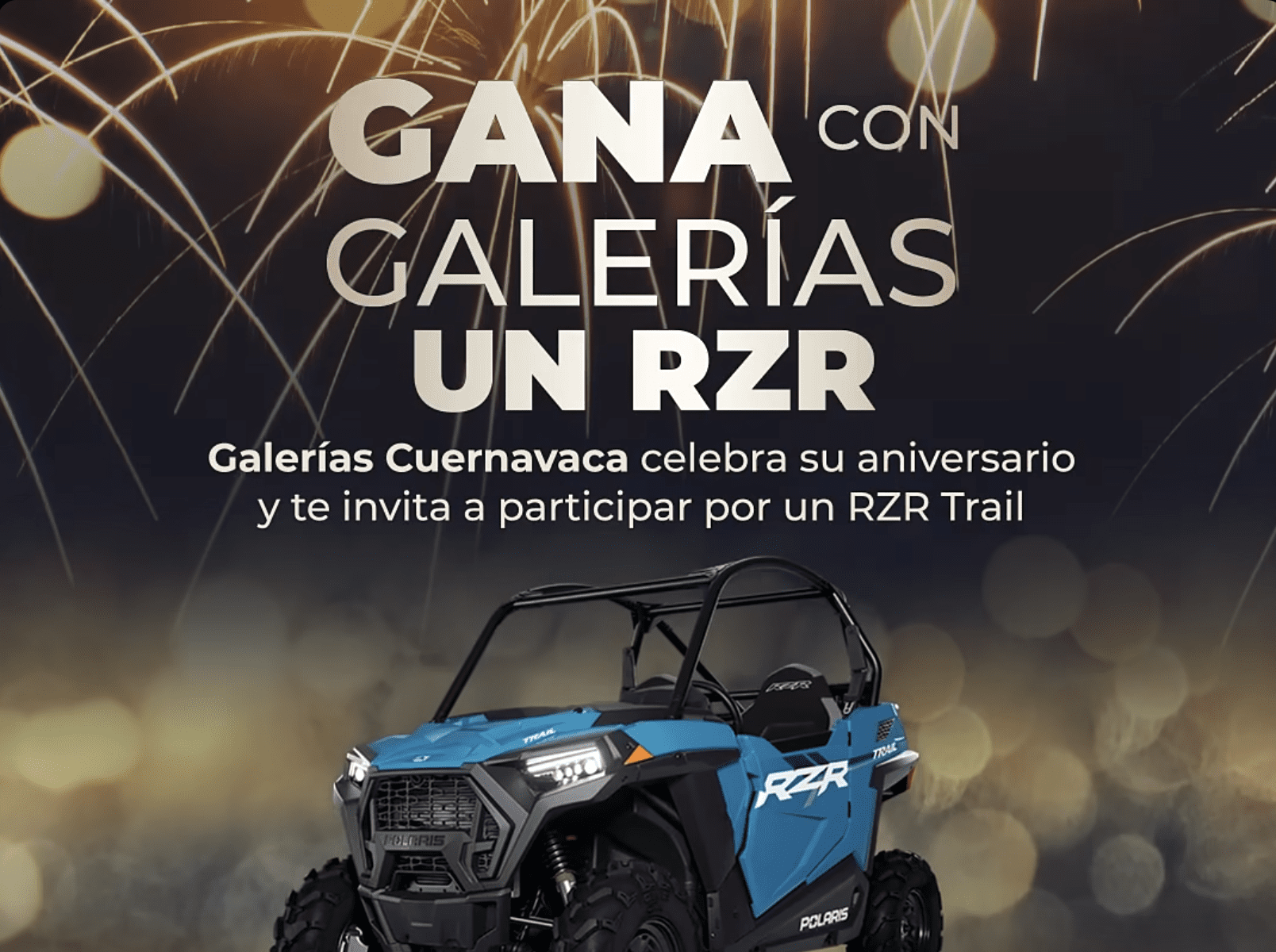 Galerías Cuernavaca te invita a participar a su concurso en el que podrás ganar un vehículo RZR Trail, si quieres ser ganador realiza la mecánica siguiente: