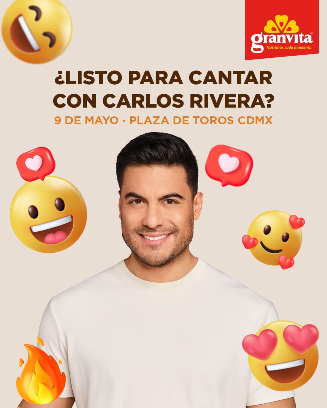 Granvita regalará a los participantes ganadores: Un pase doble al concierto de Carlos Rivera este 9 de mayo de 2026, en la Plaza de Toros México.