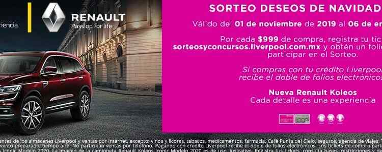 Sorteo Liverpool Deseos de Navidad 2019: Gana 1 de 14 Renault Koleos Iconic 2020 en sorteosyconcursos.liverpool.com.mx