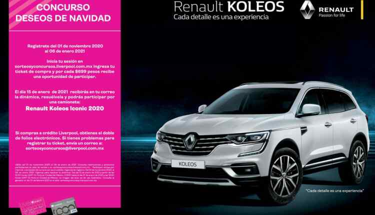 Liverpool te invita a participar a su concurso Deseos de Navidad 2020 en el que podrás ganar una Renault Koleos, si quieres ser ganador realiza la mecánica siguiente: