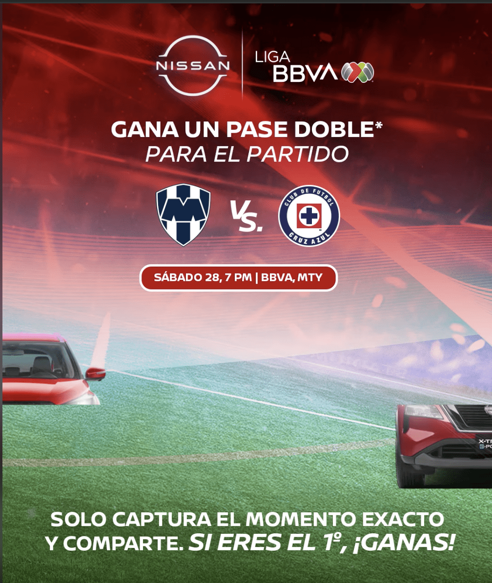 Nissan regalará al participante ganador: Un pase doble para el partido de Monterrey vs Cruz Azul .
