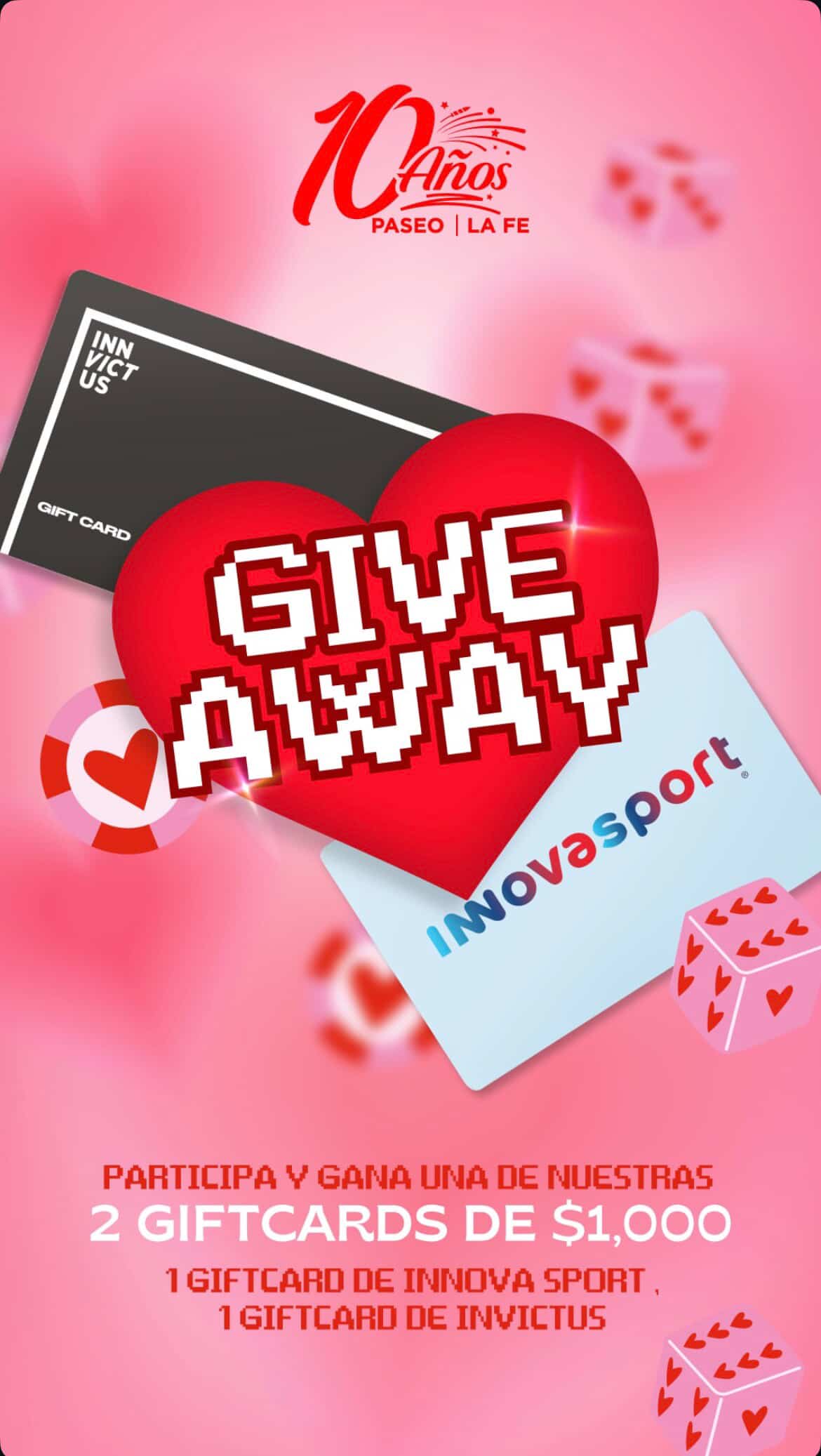 Paseo La Fe te invita a participar a su concurso de San Valentín en el que podrás ganar gift cards de Innova Sport e Invictus, si quieres ser ganador realiza la mecánica siguiente: