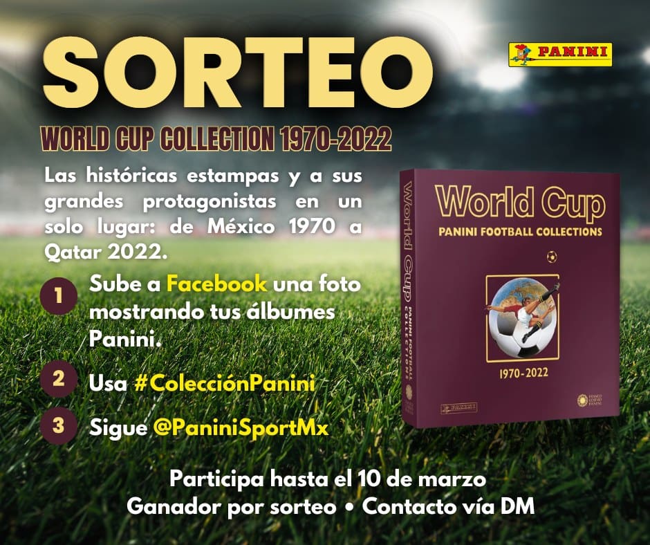 Panini Sport Mx regalará al participante ganador: La World Cup Collection 1970–2022 de Panini, desde México 70 hasta Qatar 2022.