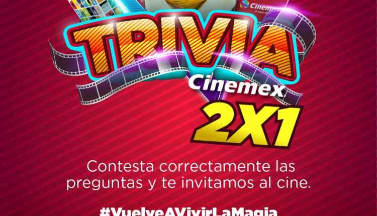 Cinemex te invita a participar a su concurso Trivia Cinemex en el que podrás ganar entradas al 2×1, si quieres ser ganador realiza la mecánica siguiente: