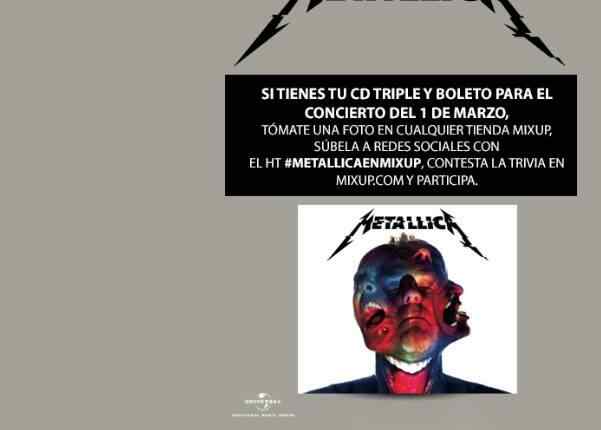 Si tienes tu CD triple de Metallica y tu boleto para el concierto, tómate una foto en Mixup, compártela, contesta la trivia y gana meet & greet con Metallica