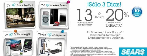 En este fin de semana recibe 13 meses sin intereses o 20% de descuento en Sears