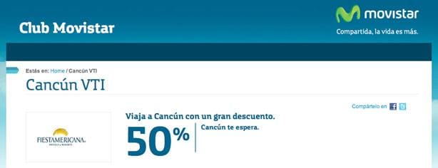 • 50% de descuento en el paquete Cancún VTI de Fiesta Americana Vacation Club con Club Movistar.