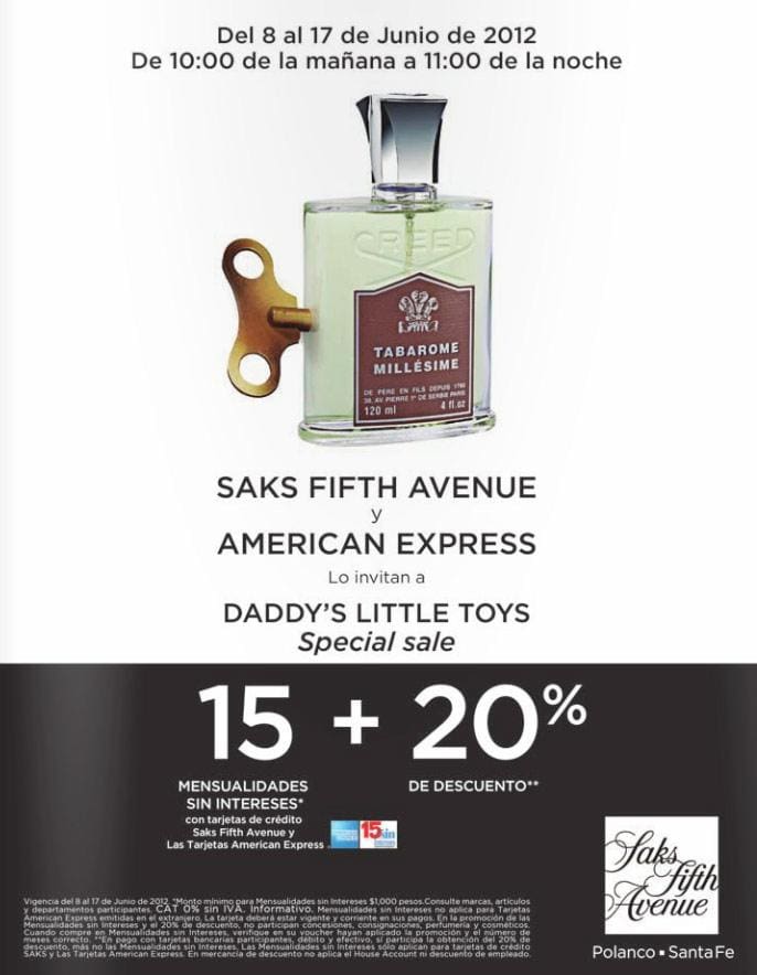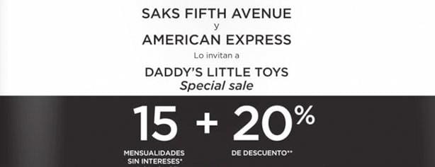 - 15 meses sin intereses sólo con tarjetas Saks Fifth Avenue y American Express.