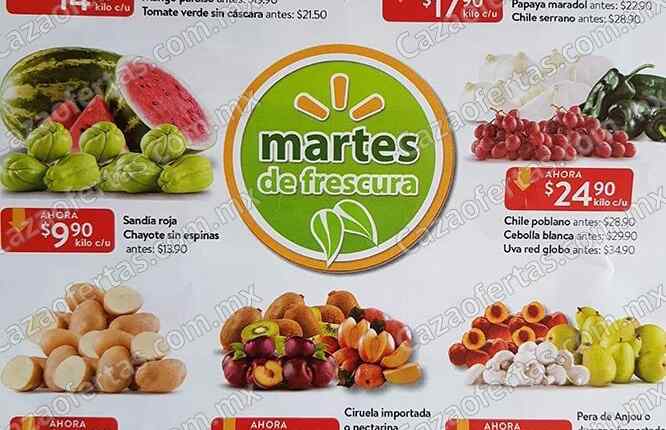 Para el Martes de Frescura Walmart del día de mañana 3 de septiembre estas son algunas de las ofertas principales que podrán encontrar en frutas y verduras. Agradecemos a Cazaofertas México por la información proporcionada: