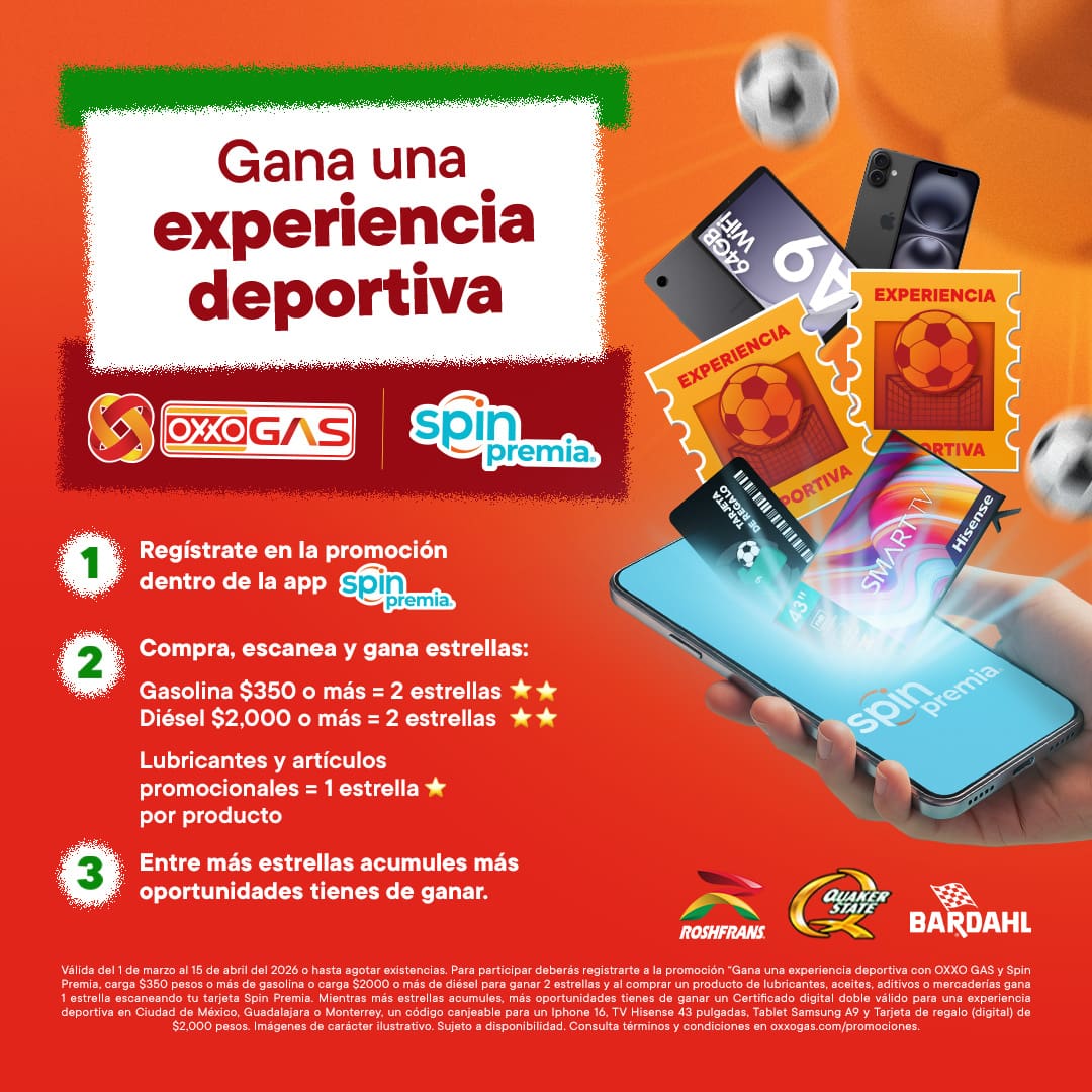 Regístratem carga gasolina y gana una experiencia deportiva Gasolineras Oxxo Gas te invita a participar a su concurso en el…