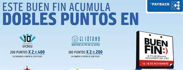 Muestra tu monedero Payback durante este Buen Fin en los establecimientos participantes y obtén el doble de puntos:
